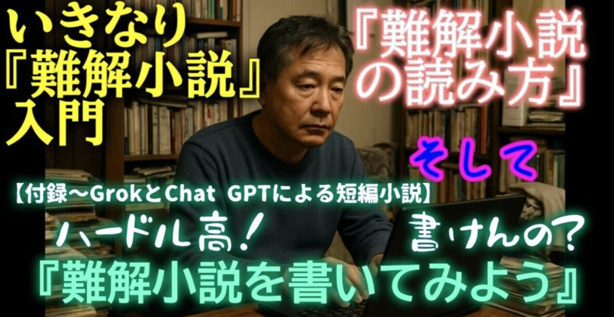 この【いきなり『難解小説』入門『難解小説の読み方』そして『難解小説を書いてみよう』】を読み込ませた上で2つのAIに短編作品を書いてもらった。