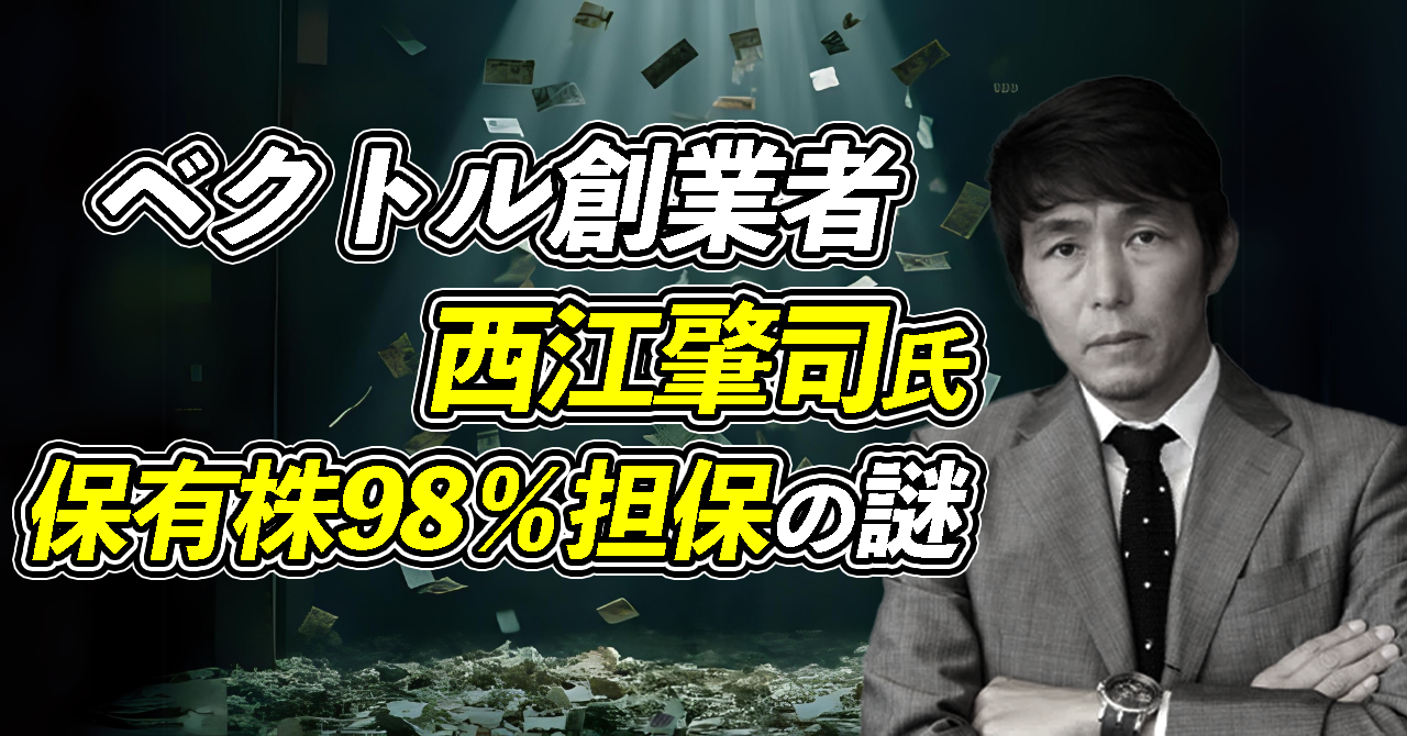 東証プライム市場に上場するPR会社「ベクトル」(証券コード:6058)の創業者である西江肇司氏が、自身が保有する同社株式の大半を担保に金融機関から巨額の借り入れを行っていることが明らかとなった。